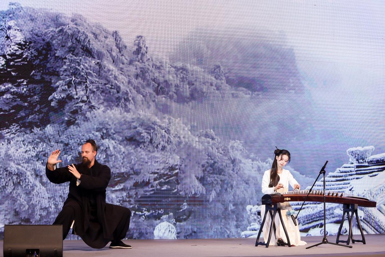 “武当山杰克”根与音乐博主彭静旋同台演绎太极与古筝,一黑一白,一动一静,相得益彰,这恰似中外文化交流互鉴的缩影。