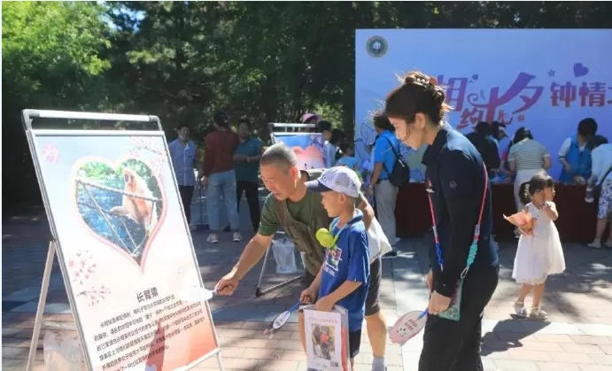 在活动当天由讲解员讲述七夕传统节日文化及动物界的忠贞爱情故事。现场游客可与七夕相框合影打卡,游客也可互赠心语卡片。