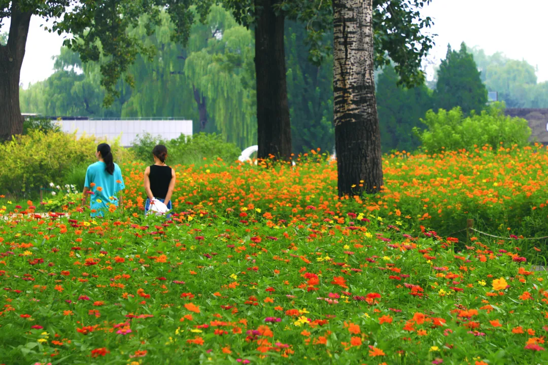 科普馆西侧花卉展区占地面积8千平米,是国家植物园花卉展示的主要区域之一,目前展示的主要是黄秋英(硫华菊)、秋英(波斯菊)、百日菊等植物。二十万株鲜花组成的花海已经进入最佳观赏期,花期可以延续到8月下旬。
