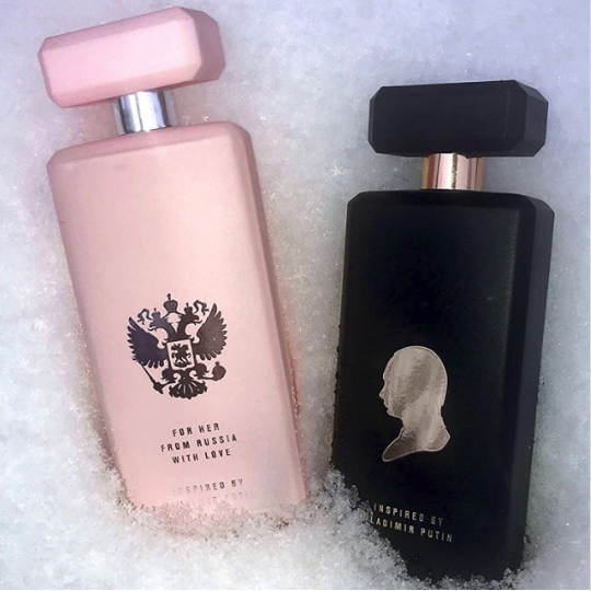 据俄罗斯卫星通讯社报道,香水品牌Leaders在莫斯科市内一家商场开设了柜台,销售两款名为"Number one"男士香水和"Russian woman"女士香水。该款香水以俄罗斯总统普京为灵感,香水瓶上还印有普京的头像和俄罗斯国徽。