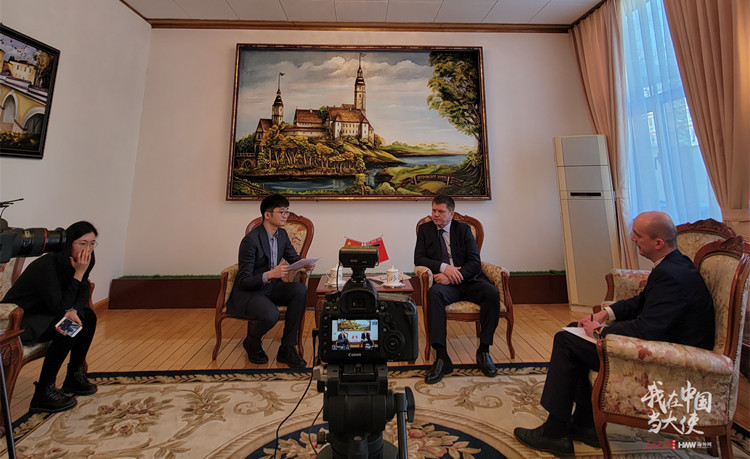白俄罗斯驻华大使尤里·先科接受人民日报海外网专访。海外网 付勇超摄