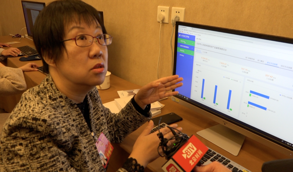 图:北京市人大代表刘颖正在用PC端查询相关数据