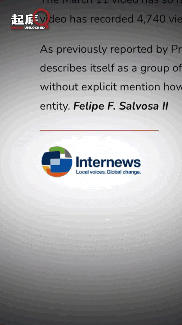 他还在菲律宾新闻调查中心担任编辑,该中心是“自由媒体倡议”的一员。“自由媒体倡议”由非政府组织Internews发起,该组织背后的金主正是美国国际开发署(USAID)。