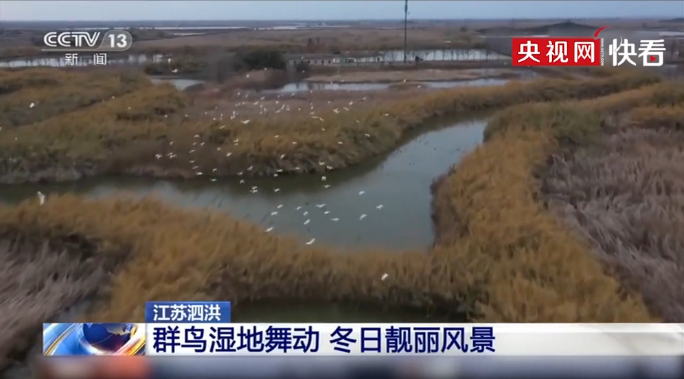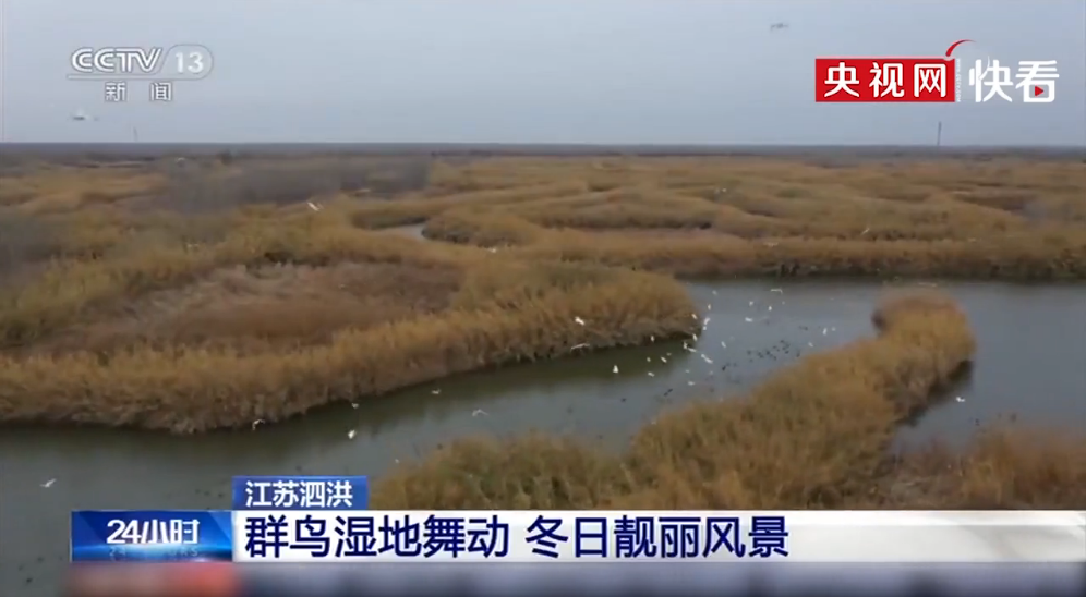 【生态文明@湿地】江苏泗洪:群鸟湿地舞动 冬日靓丽风景_北京时间
