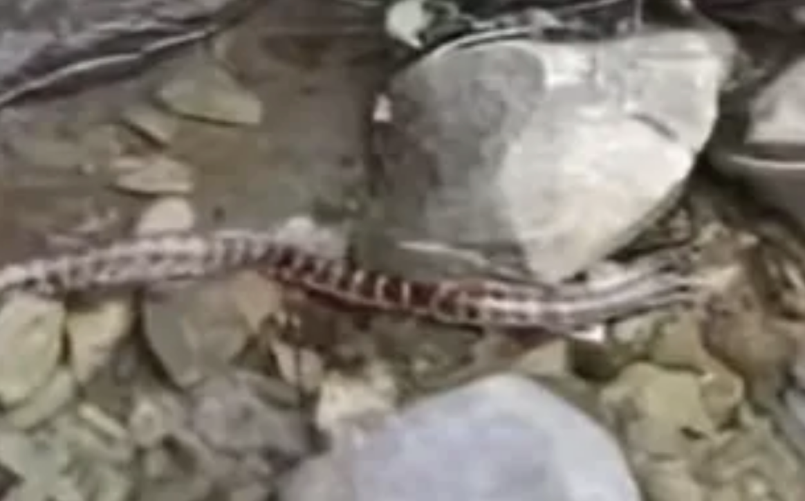 游客在国家植物园樱桃沟景区发现赤链蛇出没。“北京发布”视频截图