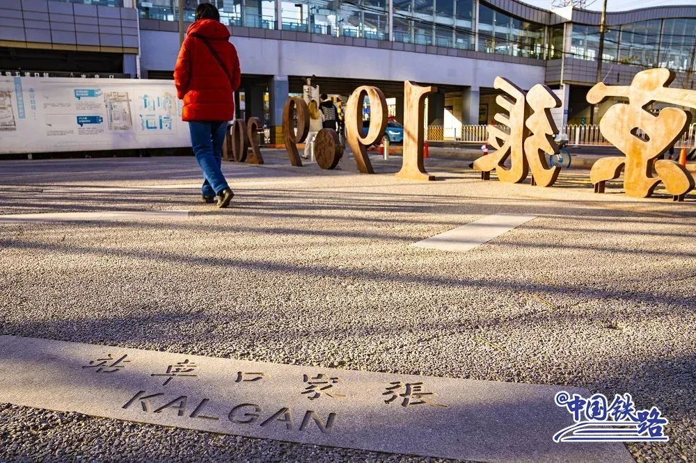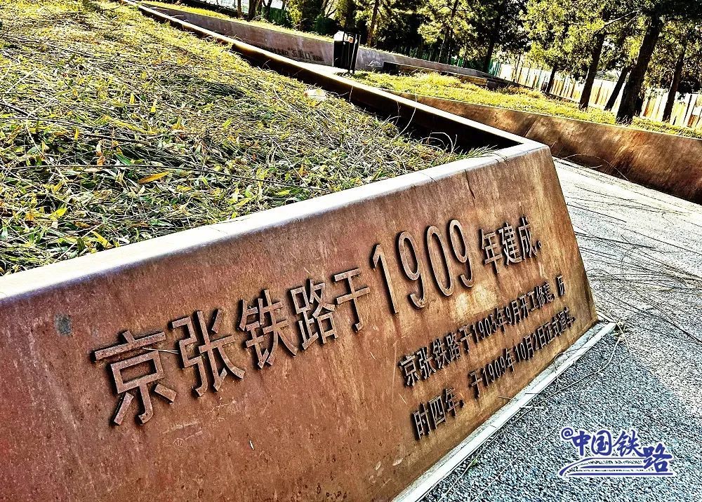 旁边的绿植池边缘还刻有京张铁路相关重要历史。在110多年前,詹天佑主持修建京张铁路,这是中国人自行设计和建造的第一条干线铁路。
