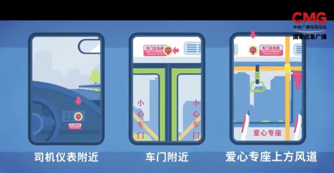 若车门无法打开,要通过应急开关切断气路开门逃生。车型不同,应急开关位置不同,有些在驾驶员座位旁,有些在车门附近。