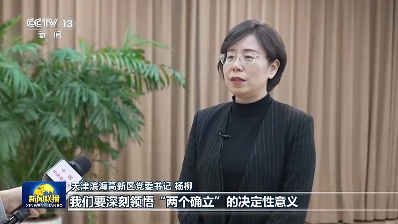 天津滨海高新区党委书记 杨柳:我们要深刻领悟“两个确立”的决定性意义,坚决做到“两个维护”,自觉把思想和行动统一到总书记重要讲话精神和党中央决策部署上来,坚持智能化、绿色化、融合化方向,推进产业创新、人才集聚,切实把学习成果转化为实干实绩。