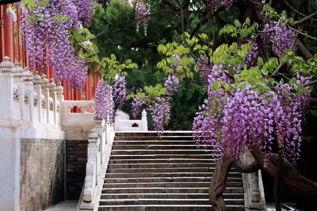 紫藤季已到!近日,北京孔庙和国子监博物馆院内的十余株紫藤已陆续开放。北京孔庙和国子监博物馆推出“紫藤地图”,方便公众观花赏景。