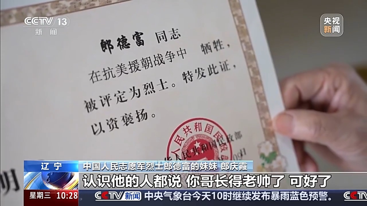 中国人民志愿军烈士郎德富的妹妹 郎庆霞:他小名叫宝德子,皮肤还白,个子还高。我妈说,过家门槛的话都得低头,就说明他个很高。认识他的人都说,你哥长得老帅了,可好了。
