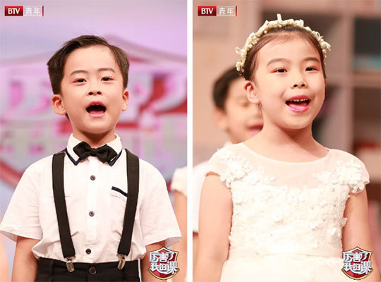 《同一首歌》和《艺术,艺术》都是非常经典的曲目,两个小朋友现场演唱了副歌的一小段。杨阳老师对小演员唱歌时的身形及技巧作了相应指导。