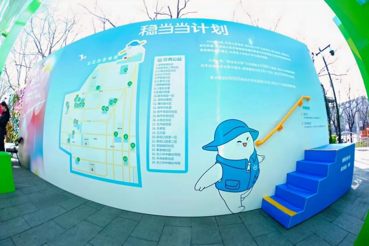 2025年4月,基于多年社区助老服务的深厚积淀和对社区居民需求的调研,贝壳公益联合北京链家、被窝整装共同发起“稳当当计划”公益项目,聚焦楼道适老化安全微改造,为未安装电梯老旧小区楼道安装扶手和首末阶梯警示贴。