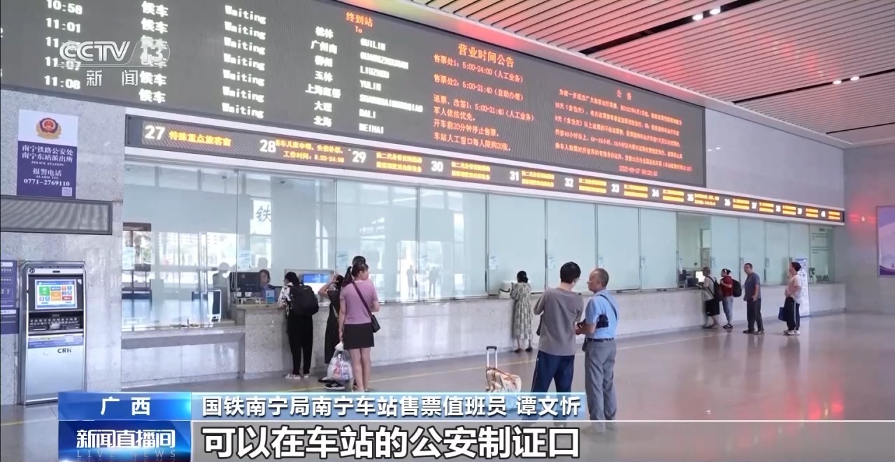 国铁南宁局南宁车站售票值班员 谭文忻:儿童旅客如果忘记携带身份证的,也不要着急,可以在车站的公安制证口办理临时身份证明,也可以通过铁路12306App办理电子临时乘车身份证明。