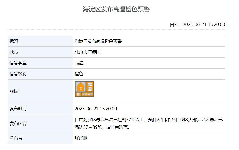 注意防范!北京已有多区发布高温橙色预警_北京时间