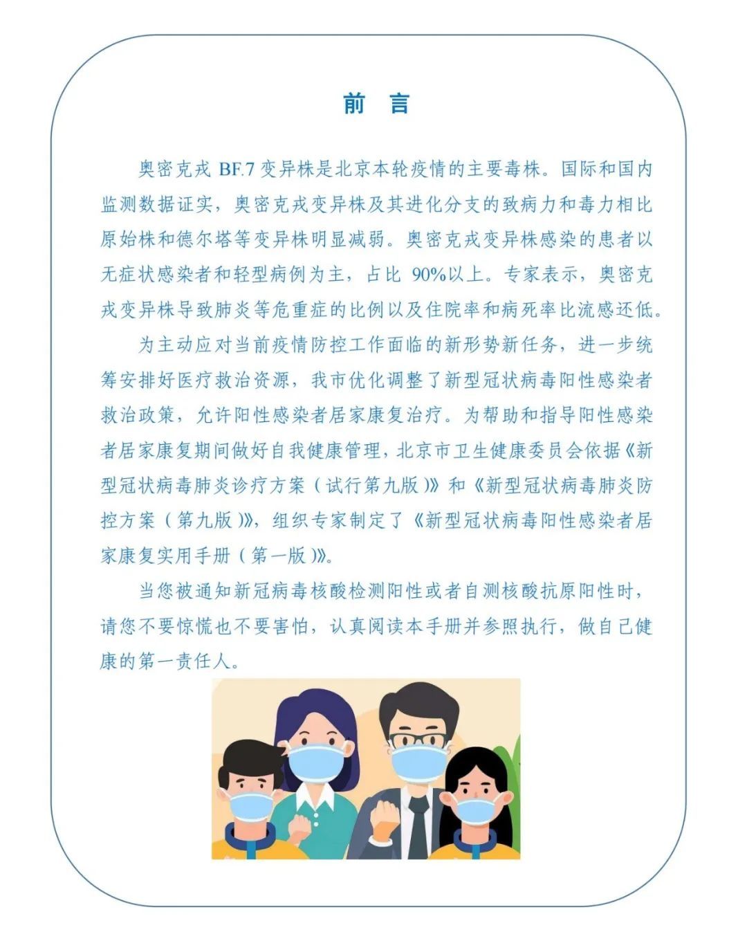 新型冠状病毒阳性感染者居家康复实用手册(第一版)。