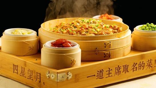 四星望月是赣州兴国(“将军县”)知名菜品,主菜蒸笼粉鱼,用竹编圆笼盛鱼,有“合家团圆、吉庆有余”的寓意,将辣椒酱调成酱汁,加入米粉和鱼片,放在圆笼中蒸熟,笼盖一揭,香、辣、鲜味扑鼻而来,鱼肉鲜嫩味美,层次丰富,入口滑润,韧性十足,配上四碟小菜,令人口舌生津,食欲大开。毛泽东在品尝这道菜时说:“你们看这个蒸笼就像月亮,四个炒菜就像星星,我们就叫它‘四星望月’吧。”这道菜由此得名。