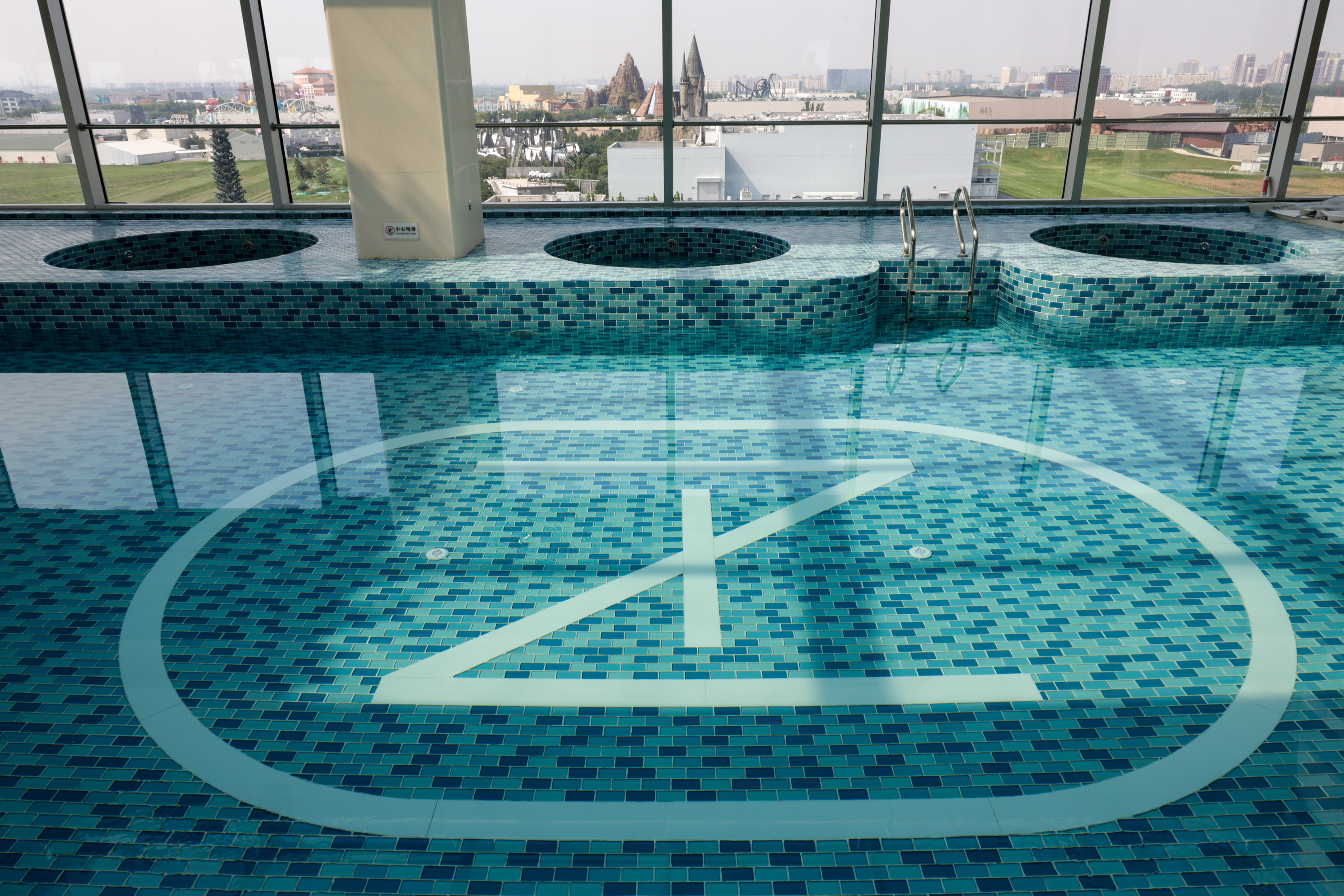 在湾里·诺岚酒店无边泳池可俯瞰北京环球度假区。新京报记者 王子诚 摄