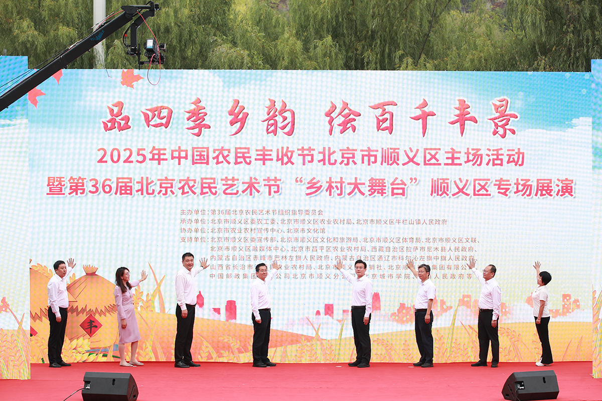金秋送爽,谷穗飘香。9月22日上午,2025年中国农民丰收节北京市顺义区主场活动与第36届北京农民艺术节乡村大舞台顺义区专场展演双节同庆,盛大启幕。本次活动融合丰收节“庆农业丰收,享美好生活”与艺术节“品四季乡韵,绘百千丰景”双重主题,通过文艺展演、丰收推介、科技展示等多元形式,全面展现顺义区农业农村发展新成就与乡村振兴新面貌。