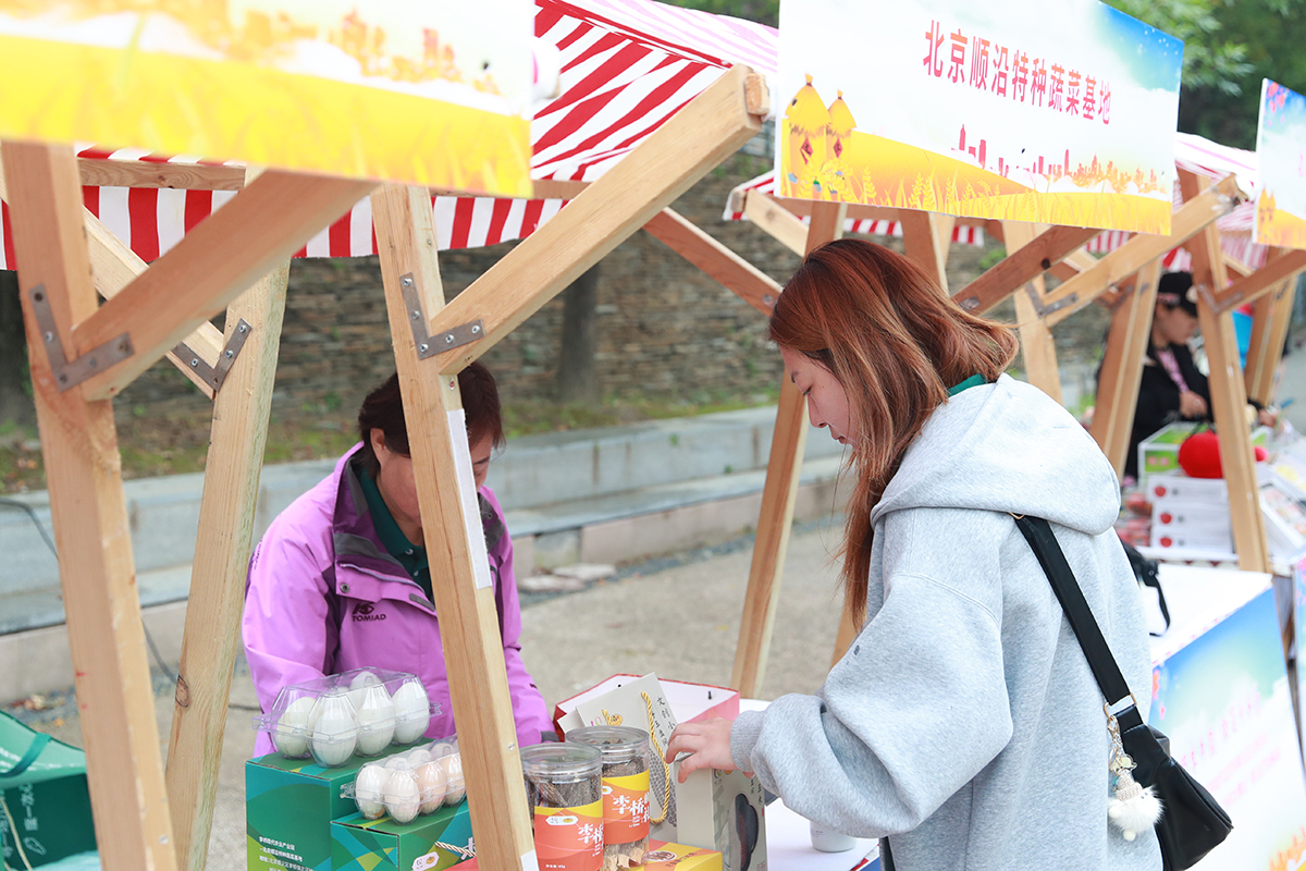 活动现场特设的金秋消费季优农市集成为一大亮点,吸引了众多市民驻足流连。市集不仅集中展示了顺义区精心培育的29个“北京优农”品牌目录产品,还特别设立了顺义区对口帮扶与合作地区特色产品展区,汇聚了西藏尼木的藏香、藜麦,内蒙古巴林左旗的笤帚苗工艺品,科左中旗的咸鸭蛋、黄金小米与五谷杂粮,以及山西沁源的黄精茶、苦参皂等优质农产品。