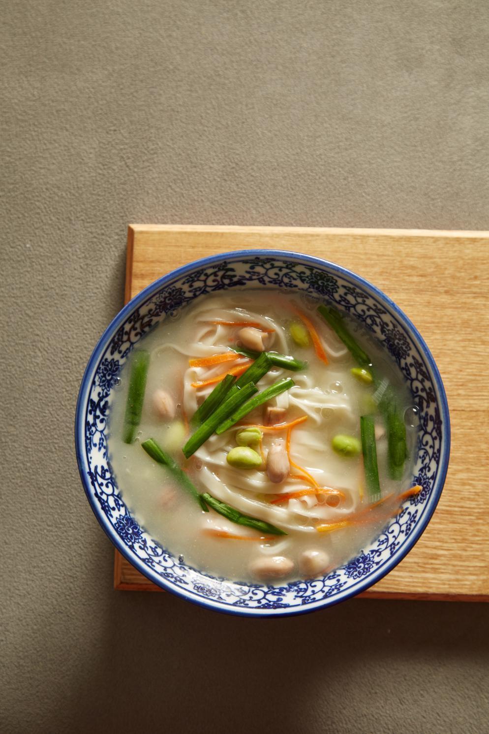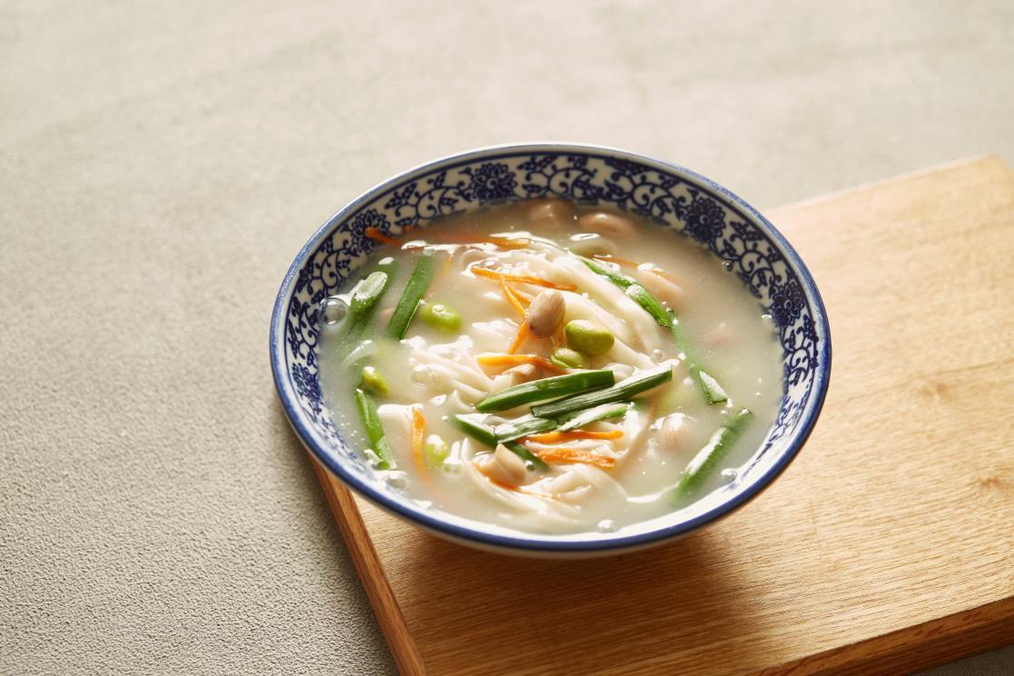 传说浆面条源自东汉刘秀被王莽追杀,饥寒交迫,逃到一浆房,利用现有的干面条和菜叶,倒上已经放酸的浆水,煮制而成,面条泛着淡淡酸气,鲜美可口,以至于他当了皇帝还总想着当年的浆面条,所以御宴中就有了浆面条这道菜,流传至今。