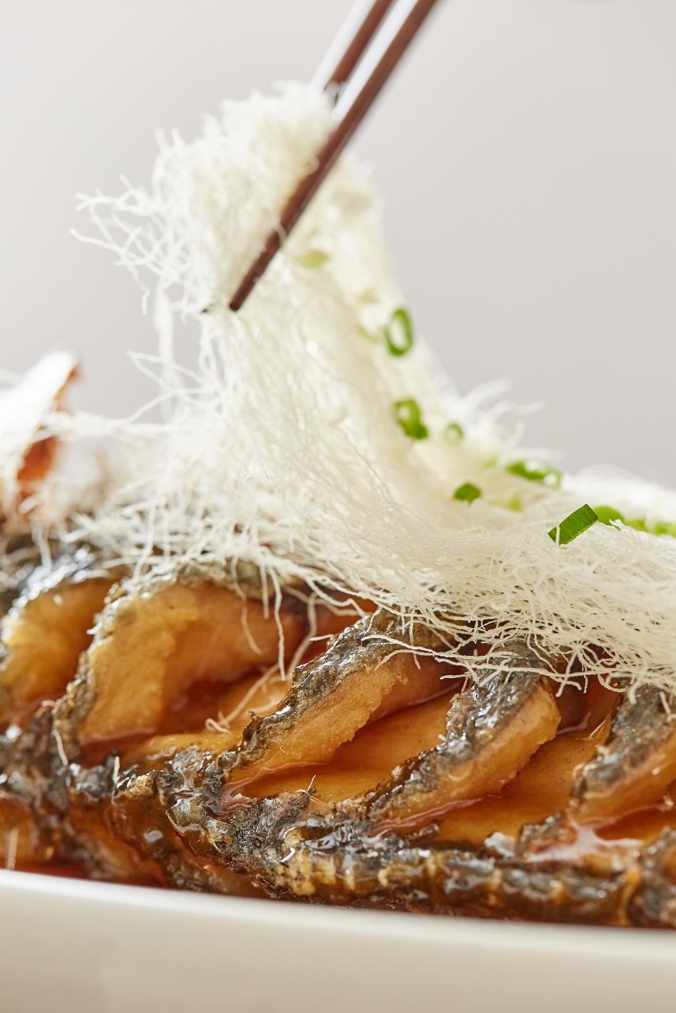 鲤鱼焙面,是豫菜代表之一。特色是和焙面搭配食用。面是我们的大厨纯手工拉制,细可穿针;在河南有“先食龙肉、后食龙须”的说法,吃起来酸甜可口、鱼肉滑嫩。这道菜还曾经是慈禧太后路过河南时最喜欢的御膳。