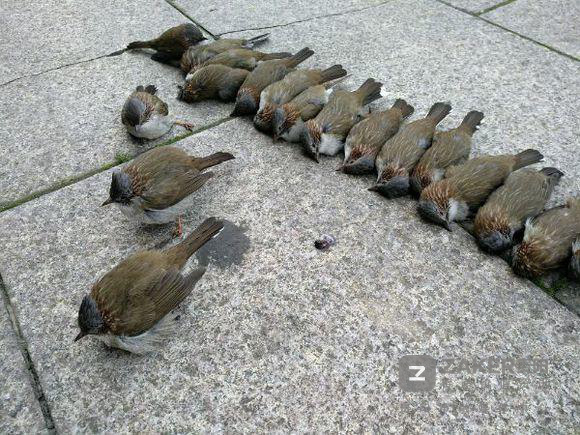 ▲误撞玻璃墙坠亡和被撞晕的小鸟