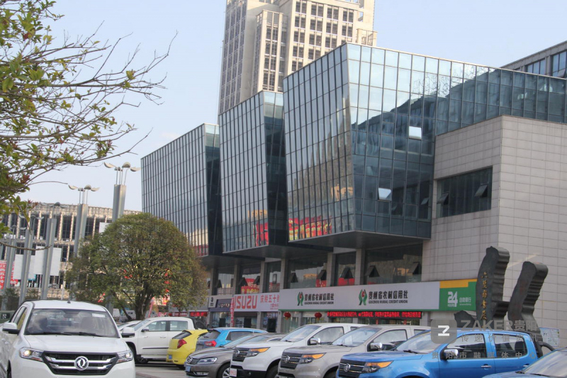 记者看到,六盘水会展中心的建筑物虽然不算高,但几乎是全玻璃外观。站在不同的角度,可见光线在玻璃上反射的映像也不同。
