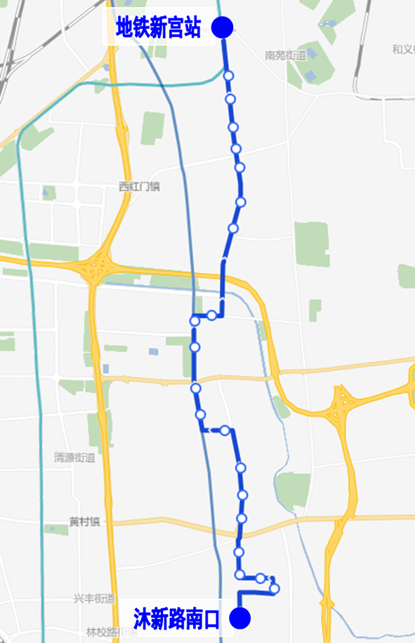 增设站位:沐新路南口;取消站位:地铁大兴新城站。