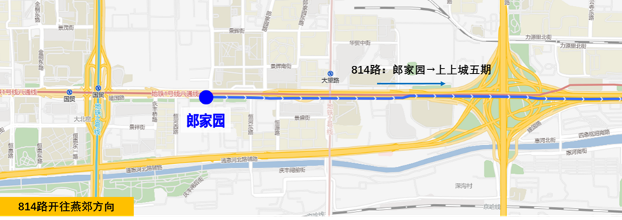 增设站位:郎家园(开往上上城五期方向);取消站位:大北窑南(开往上上城五期方向)。