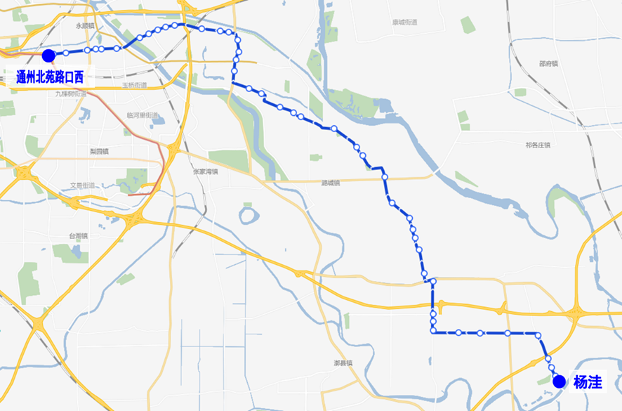 调整后首末站不变(通州辛店公交场站-运河明珠家园)。