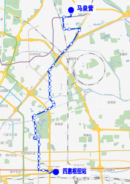调整后首末站不变(马泉营-四惠枢纽站)。