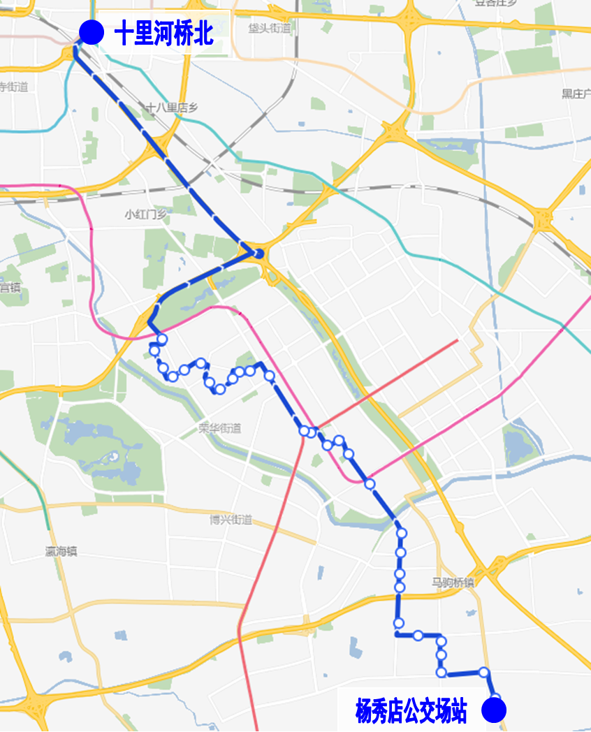 调整后首末站:杨秀店公交场站-十里河桥北。