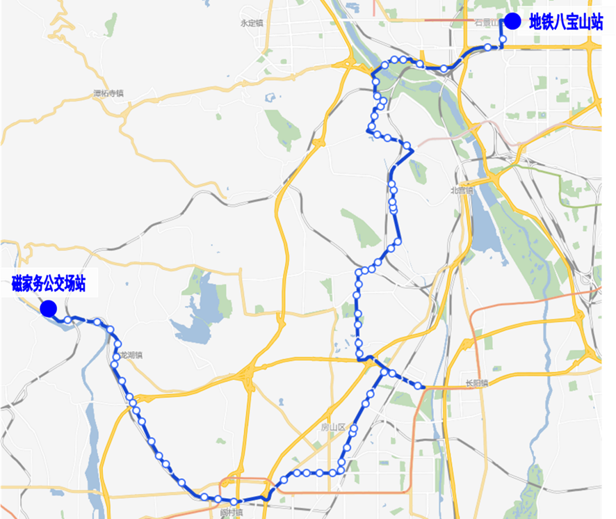 调整后首末站:磁家务公交场站-地铁八宝山站。