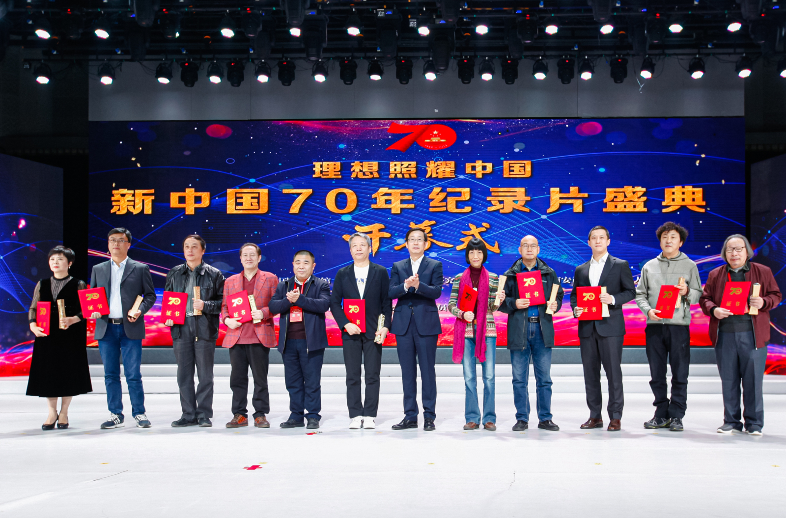 本次活动以“理想照耀中国”为主题,包括“新中国70年纪录片盛典开幕式暨颁发新中国70年纪录片百部推荐典藏作品”“新中国 70年纪录片与国家记忆学术论坛”“新中国70年纪录片盛典”三大板块。活动现场,胡占凡、张琳、饶权、王均伟等为新中国70年纪录片百部推荐典藏作品的主创代表颁发奖杯和证书。