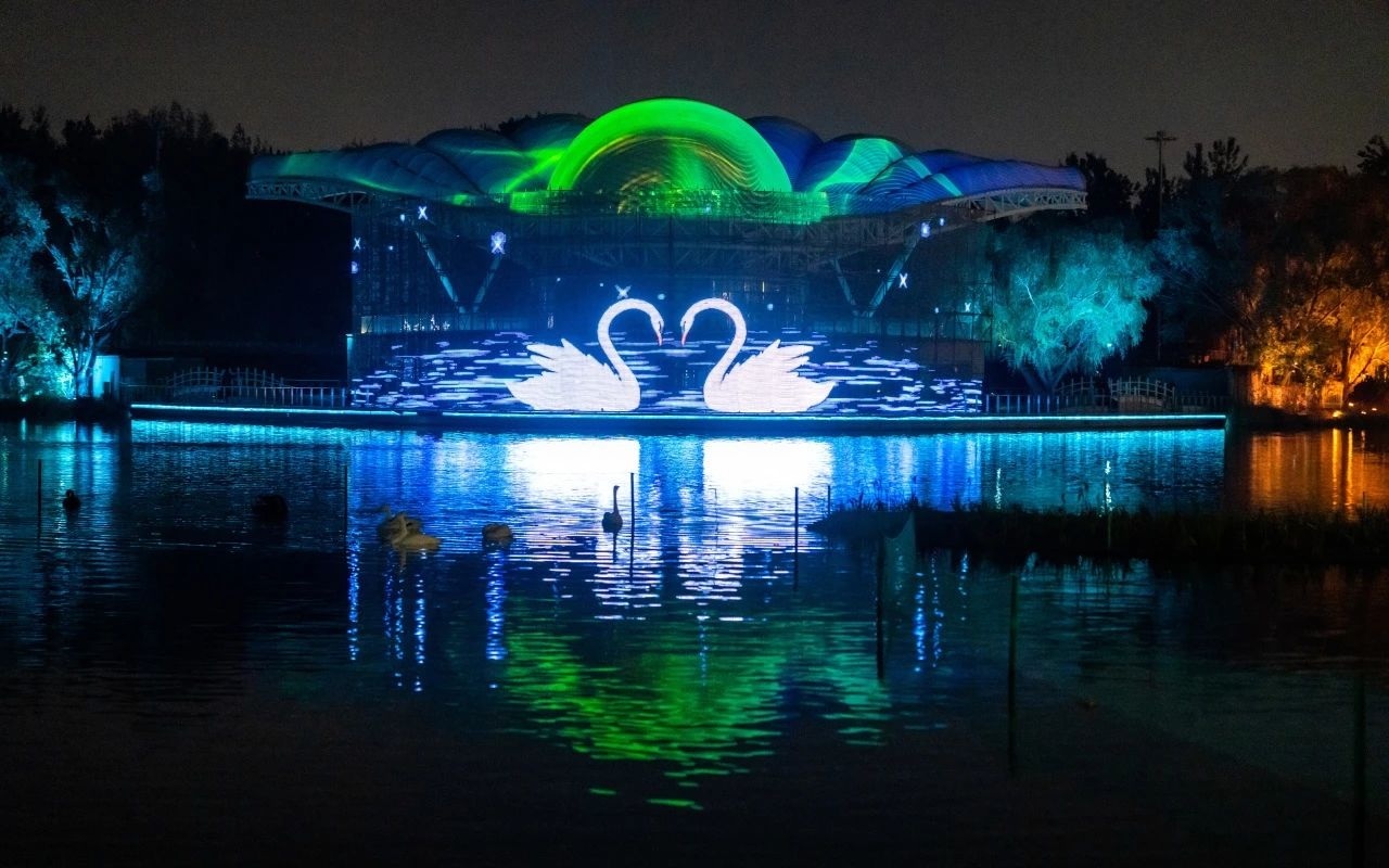 三里屯的“竖琴”泛起了光,亮马河沿岸的魔方盒子全息投影邀请您沉浸式感受艺术。米其林美食节登陆家门口的朝阳公园,品过美食,可以再来一场“荧光夜跑”。