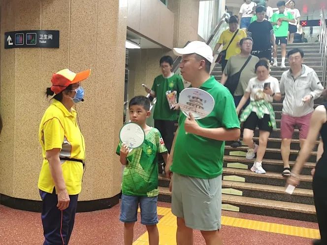 比赛开始前3小时,文明引导员早早到达工体现场。他们热情高涨,干劲十足,主动擦拭座椅、清理地面卫生、引导球迷有序入场。比赛过程中。引导员着统一服装、面带微笑引导球迷文明观赛。