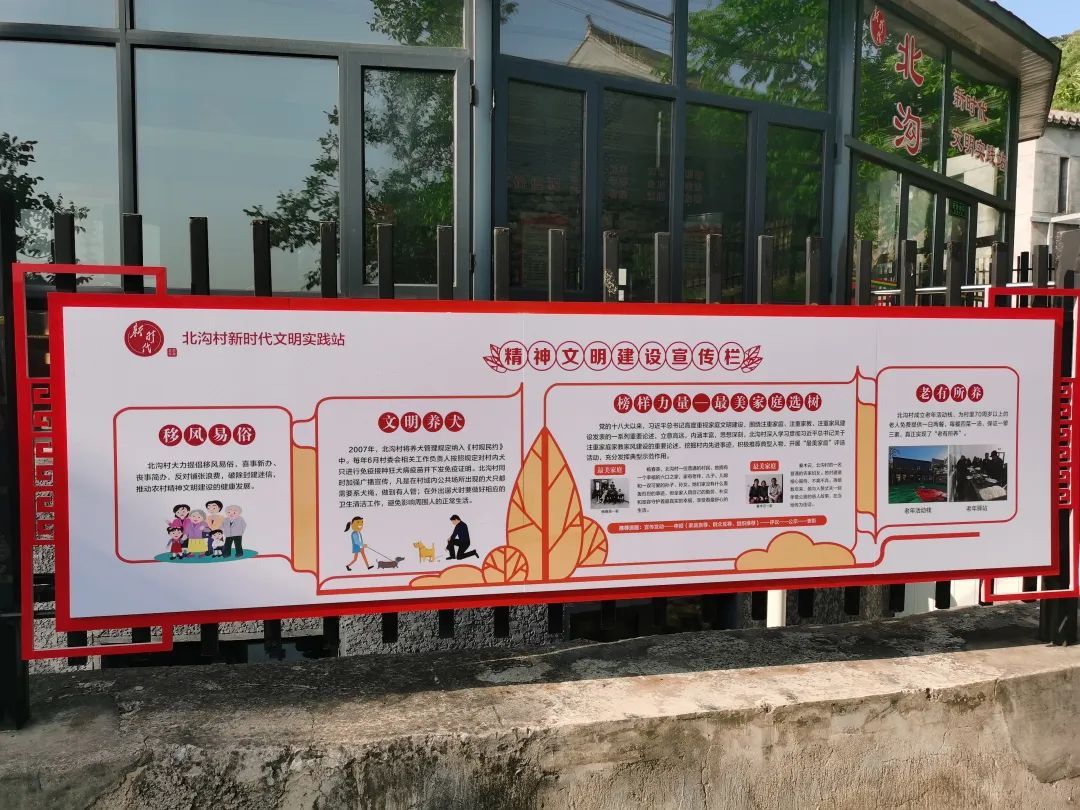 村里还投资200万元建设了文化广场,村头的墙壁上刻有黄底红字的“和为贵”三个大字,“程门立雪”“管鲍之交”“岳母刺字”“司马光砸缸”等典故也上了村里的文化墙。村内修建了“传统文化一条街”,这项举措不仅在北沟村营造了浓郁的文化氛围,潜移默化中影响了村民,同时也为旅游业的发展增添了一道亮丽的风景线。