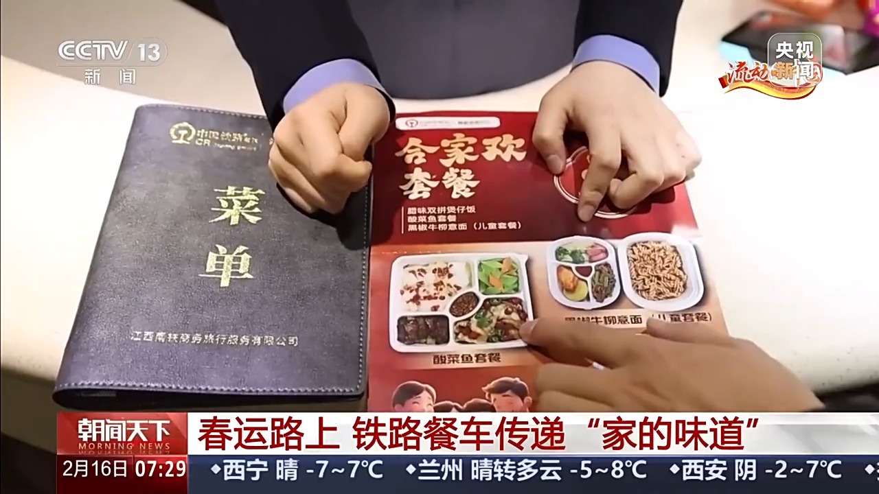 这份年的味道还延伸到了更多跨区域线路。在哈尔滨西开往重庆北的列车上,厨师团队结合川渝饮食文化,选用当地红辣椒、花椒等特色调料,精心烹制麻婆豆腐、水煮肉片等“麻辣系列”餐食,让川渝籍旅客在归途中就能尝到家乡味。