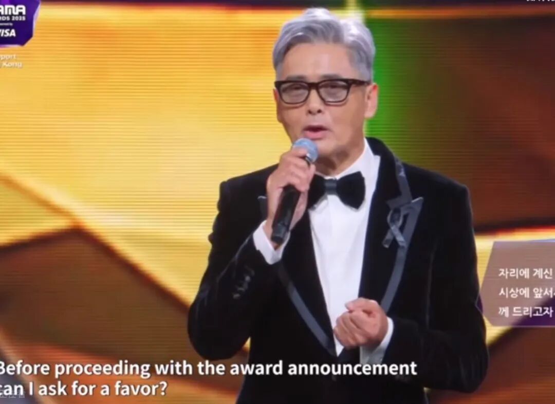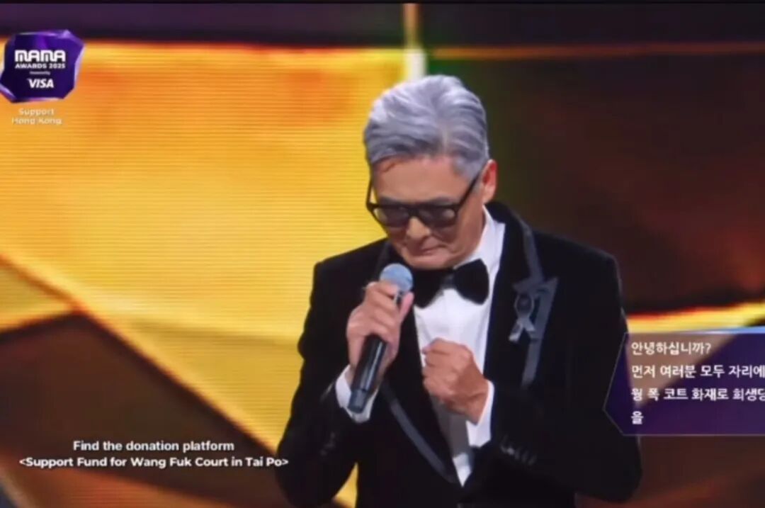 昨晚(11月29日),周润发身着黑色西装现身香港MAMA颁奖礼。在颁奖环节前,他用普通话、粤语、英语三语交替发言,呼吁全场为11月26日香港大埔宏福苑火灾遇难者默哀。