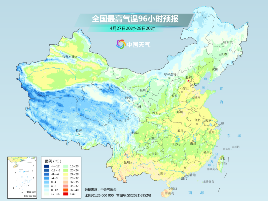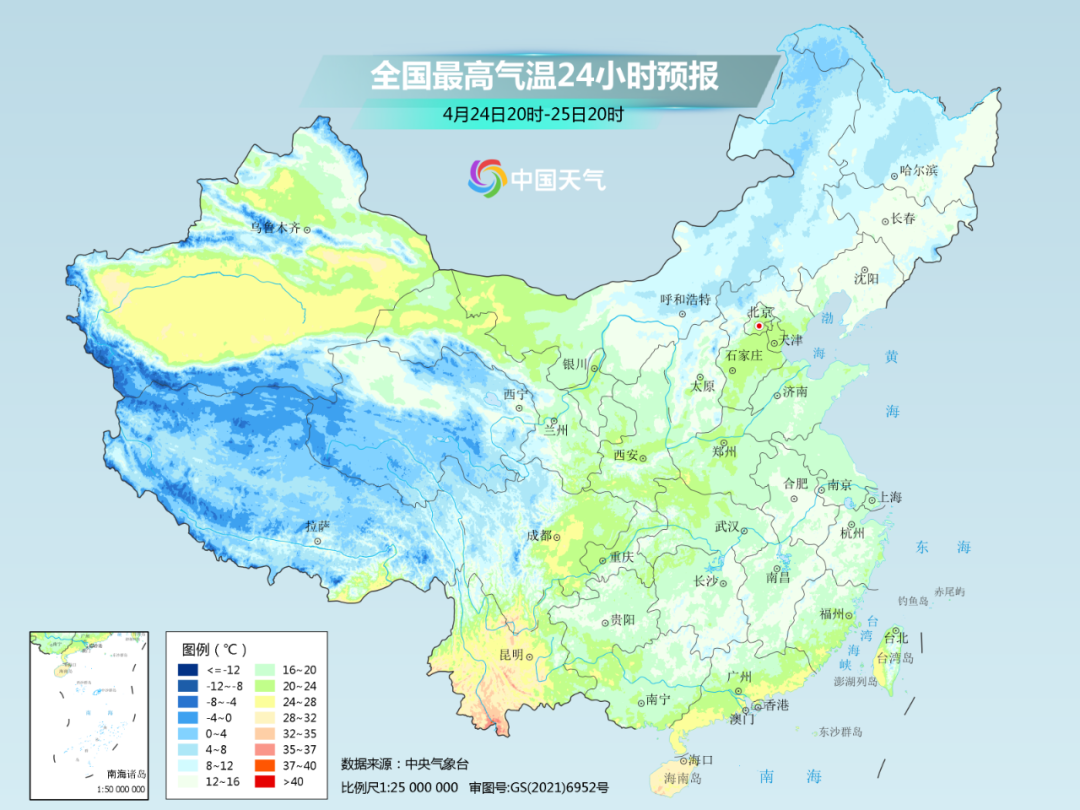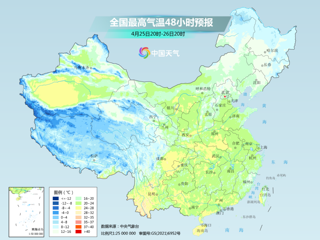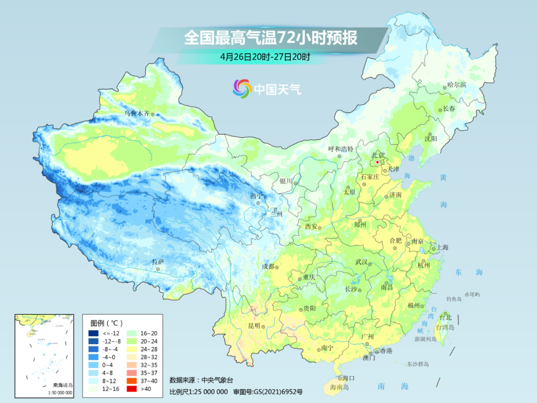 预计26日,最高气温20℃线