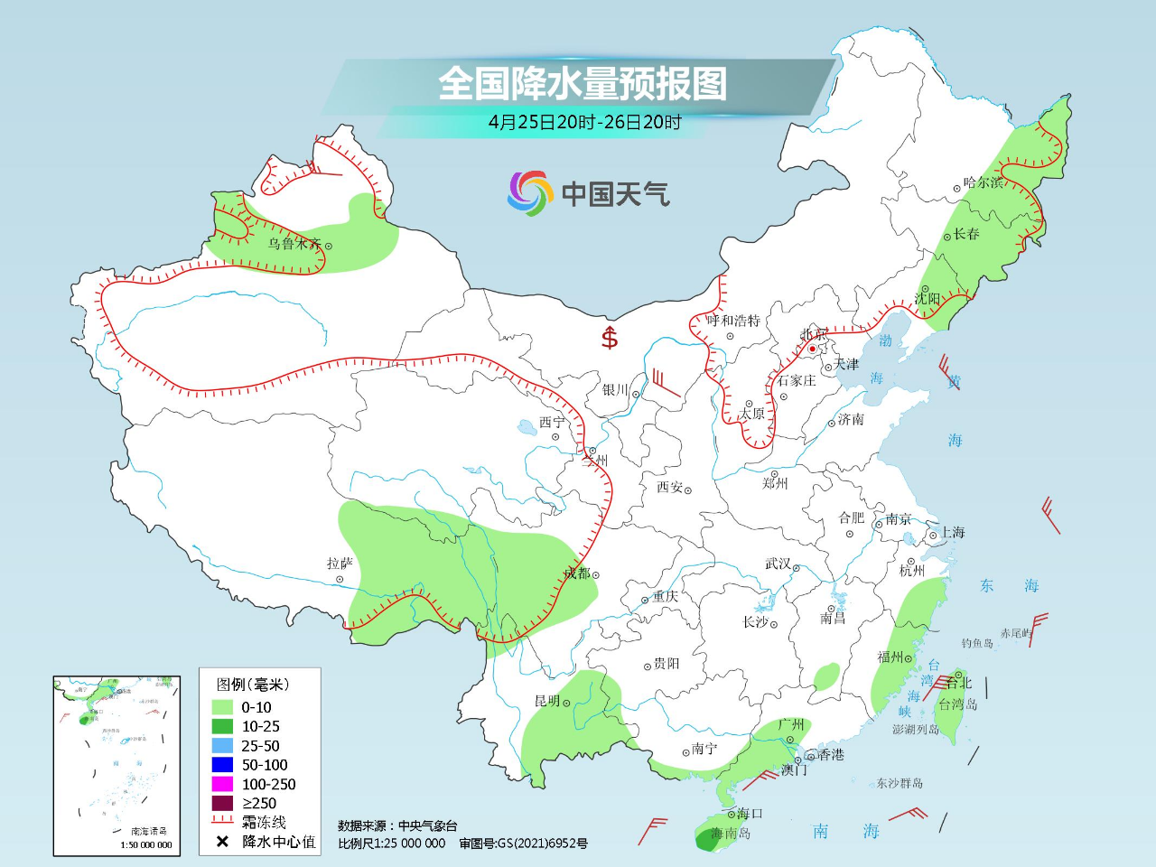 今明两天,我国降水整体