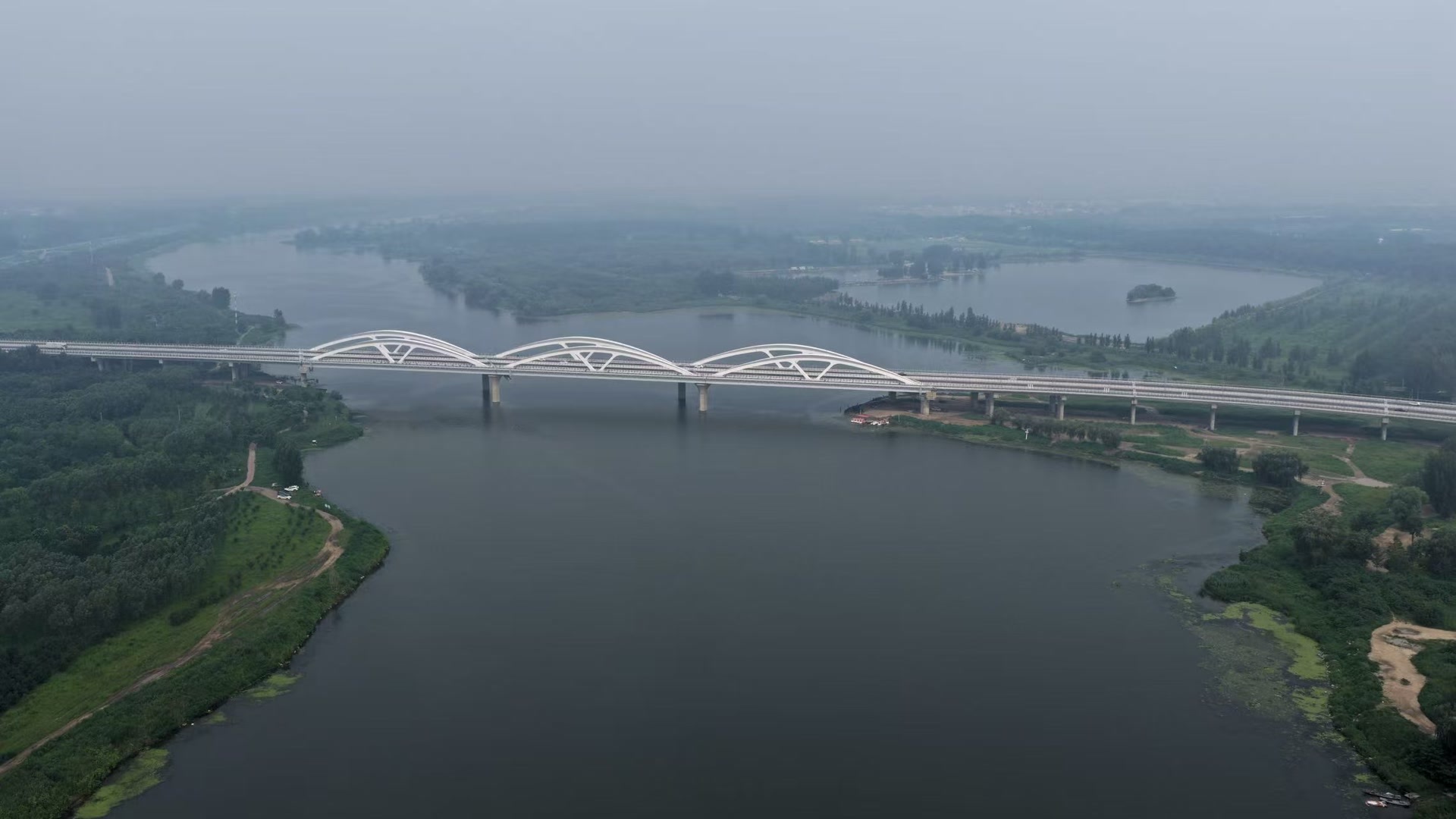 潮白河河道水位上涨。