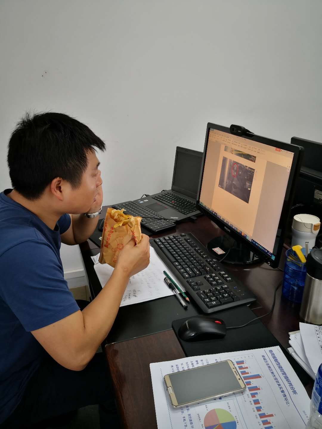 比起在车上吃快餐的,在办公室吃可是幸福多了。不过这饭也吃得不安心啊!你看,双眼死命盯着电脑屏幕,赶紧往嘴巴里塞。蜀黍,你还知道自己吃的是什么吗?