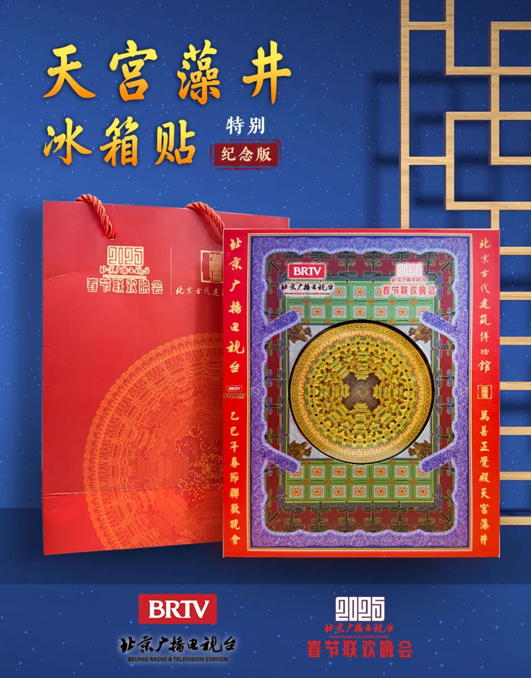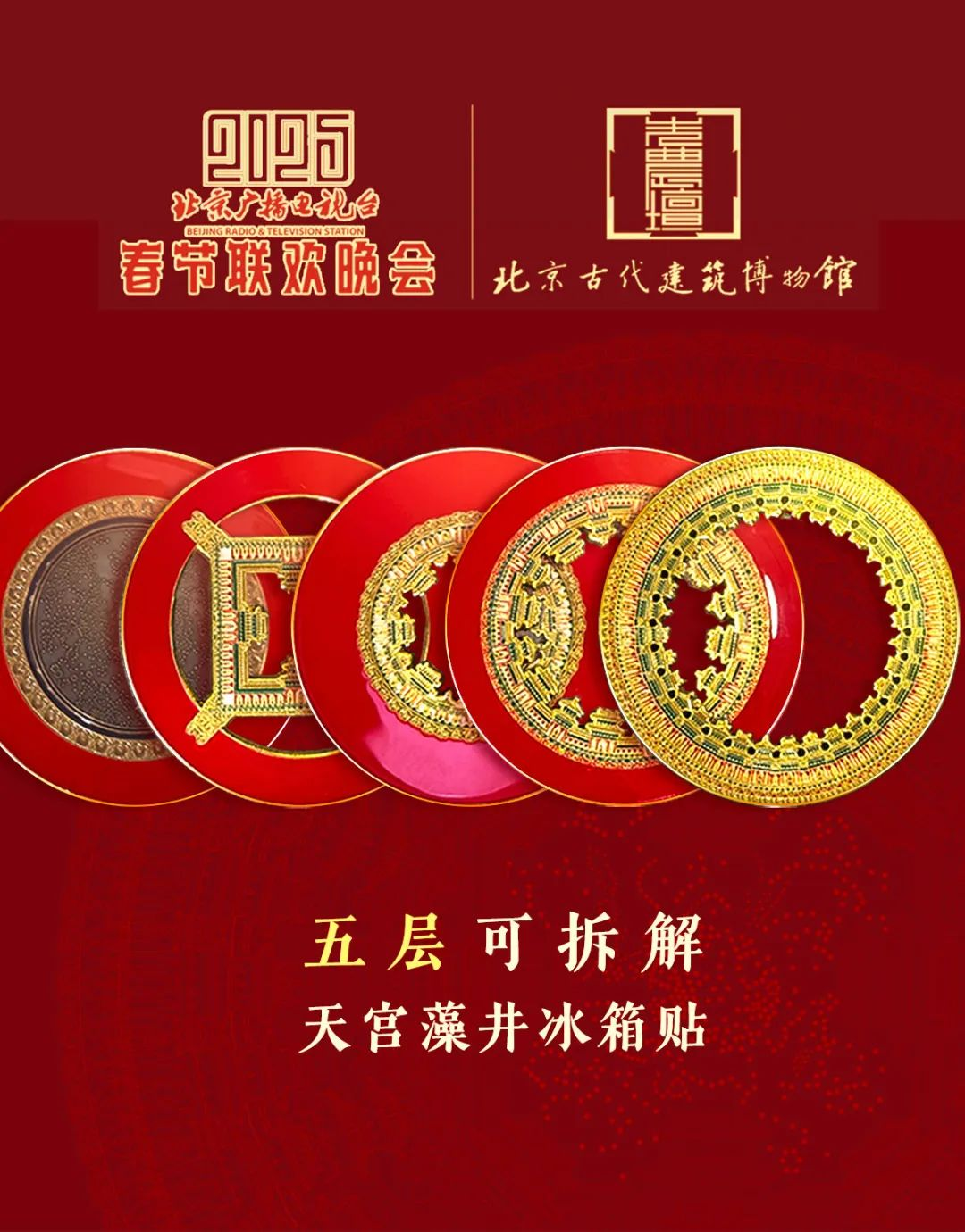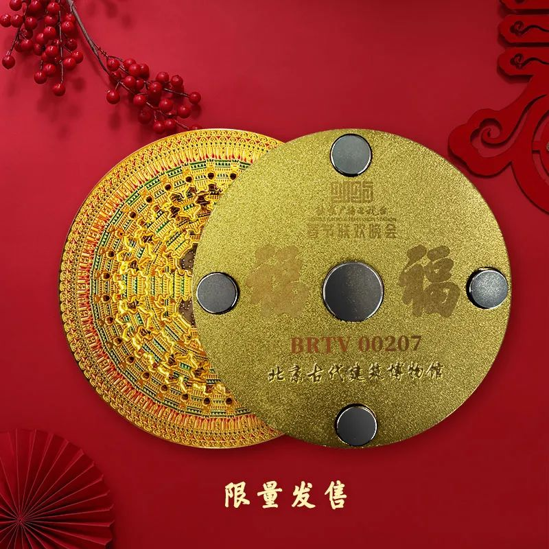 冰箱贴爱好者们,又幸福了!小年至大年初七每日限量发售!2025北京广播电视台春节联欢晚会X北京古代建筑博物馆,推出北京广播电视台蛇年春晚特别纪念版——天宫藻井金属解构冰箱贴。