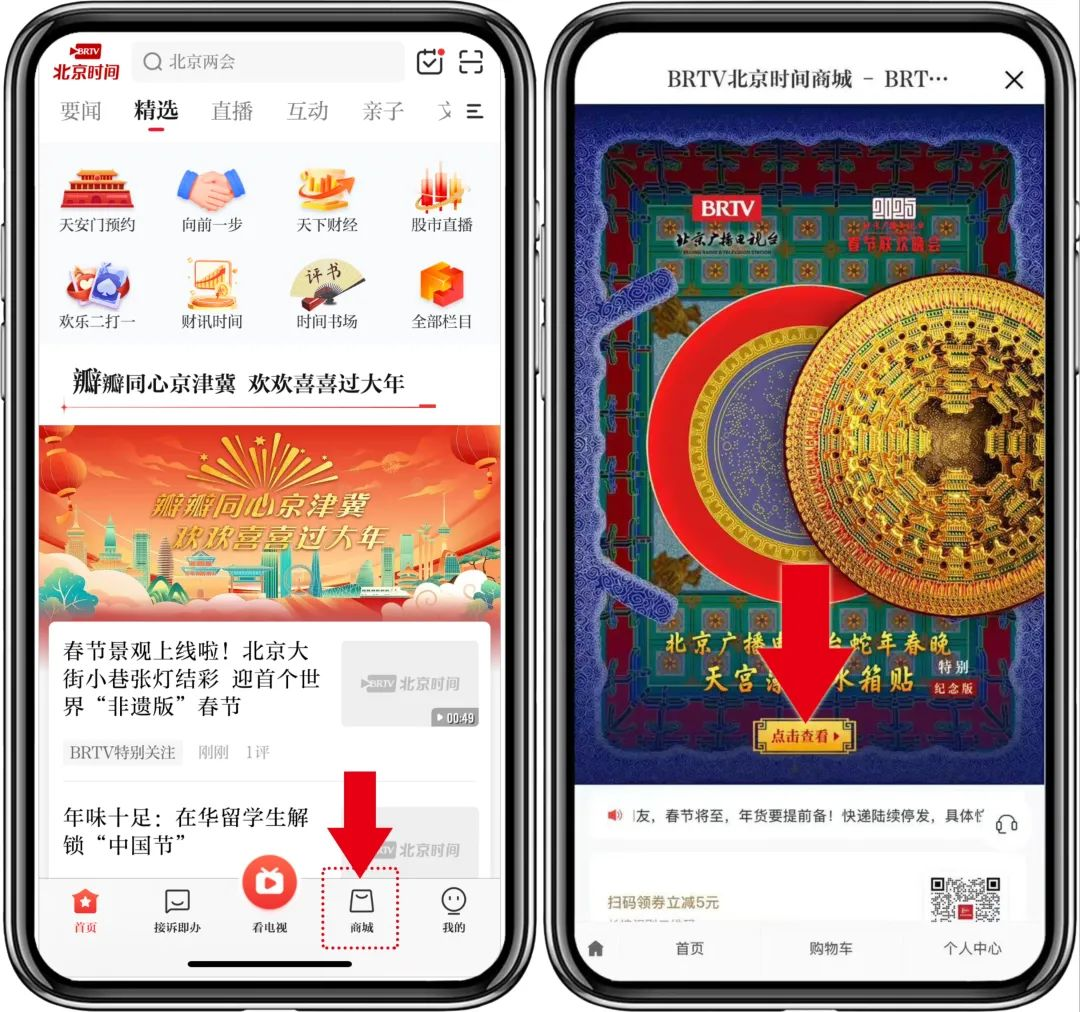 在应用市场搜索并下载“北京时间”APP,下方导航栏点击“商城”,即可购买北京广播电视台蛇年春晚特别纪念版——天宫藻井金属解构冰箱贴!