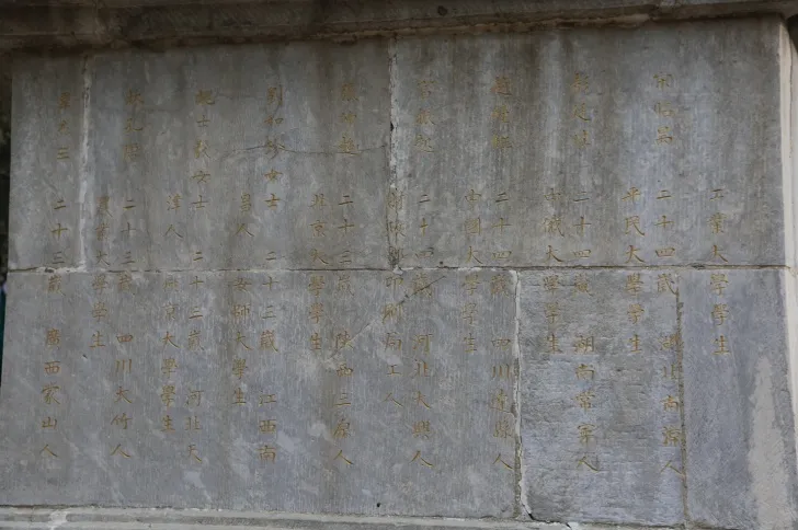 如今的烈士墓,外方内圆,庄严肃穆。中央的汉白玉纪念碑上,“三一八烈士公墓”七个篆体金色大字熠熠生辉,底座镌刻着何其巩撰写的碑文,记录着那段悲壮的历史,也镌刻着可以考证到的39位烈士的姓名。旁边的三棱形石碑,铭记着江禹烈、刘葆彝、陈燮三位烈士的英名,历经风雨,从未褪色。