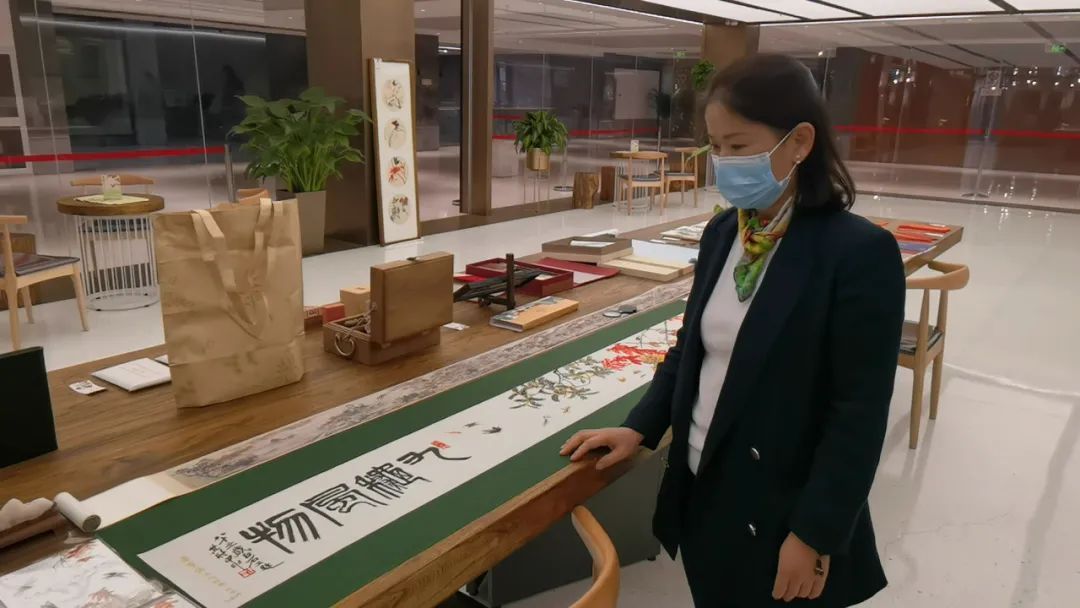 荣宝斋依托丰富馆藏资源,开发了多款既文艺典雅又实用的小物件。十一黄金周期间,成为许多书画爱好者和来京游客赠送伴手礼的选择。其中一款防水桌旗布选用荣宝斋馆藏精品齐白石《九秋风物图》作为设计灵感。荣宝斋文创中心店员陆玉华介绍: