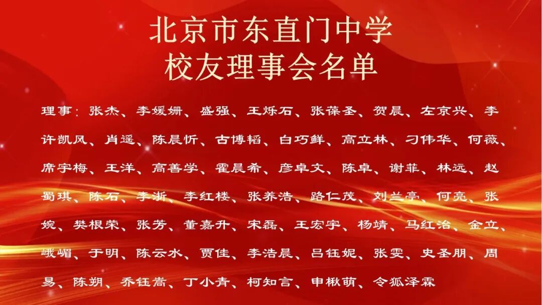 时光荏苒,初心不改。校友理事会将成为联结学校与校友的坚实桥梁、凝聚力量的重要纽带。相信在全体师生与广大校友的同心协力、携手同行下,北京市东直门中学必将在未来的十年里续写更多教育传奇,培育更多时代英才,以更加卓越的成就迎接建校百年的到来,在教育强国建设的征程中绽放出更加耀眼的光芒!