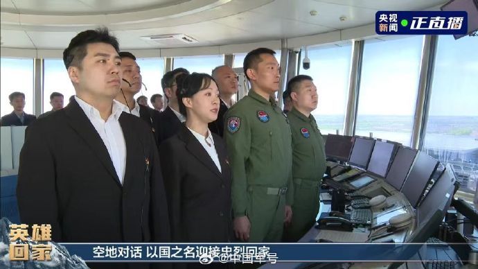 塔台:荣归50,感谢护送志愿军忠烈荣归故土。山河共盼,英雄回家,祖国从未忘记,人民从未忘记。我们以最高礼仪向忠烈致敬!