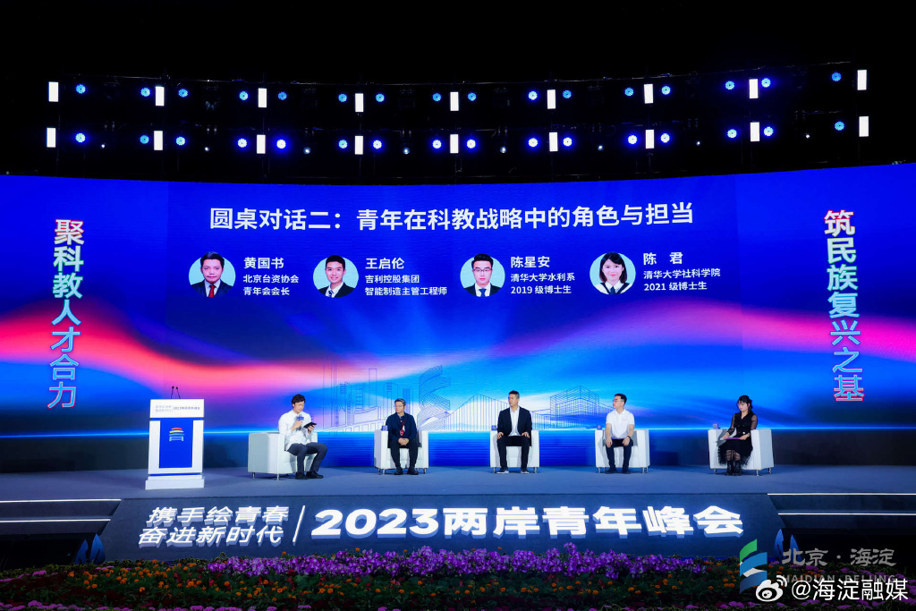 7月12日下午,2023两岸青年峰会举行科教分论坛。第二场圆桌对话关注青年在科教战略中的角色与担当。北京台资协会青年会会长黄国书、吉利控股集团智能制造主管工程师王启伦、清华大学水利系2019级博士生陈星安、清华大学社科学院2021级博士生陈君畅谈了各自的经历和体会。